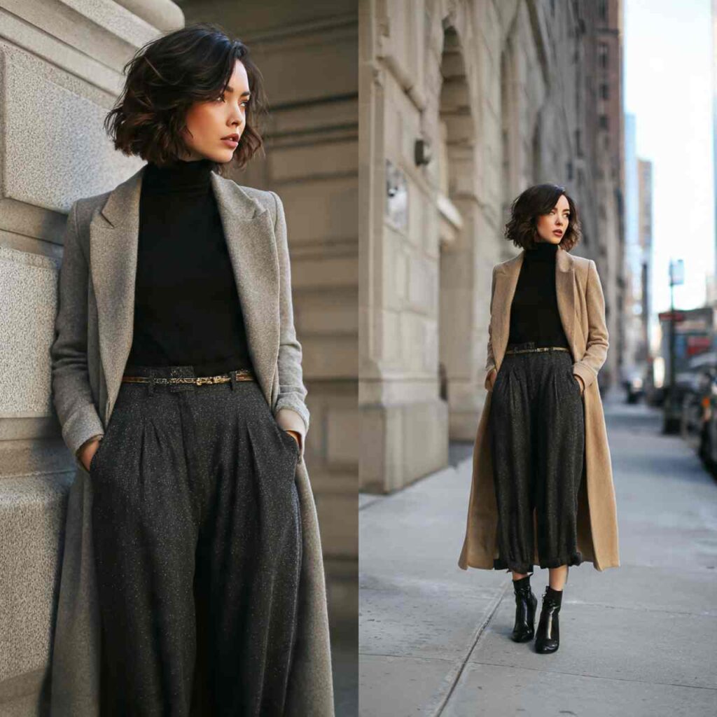 Why It Works for NYC: Wide-leg pants accommodate warm layers underneath without looking bulky. They’re professional enough for office while being comfortable for all-day wear.