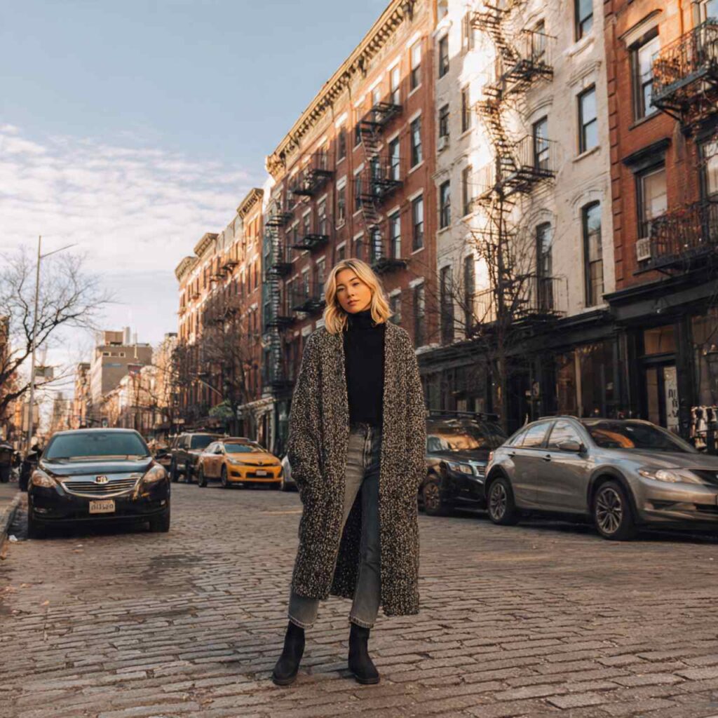 Why It Works for NYC: Cardigan coats work for less brutal days or heavily heated subway rides. They’re softer than structured coats while providing warmth and style.