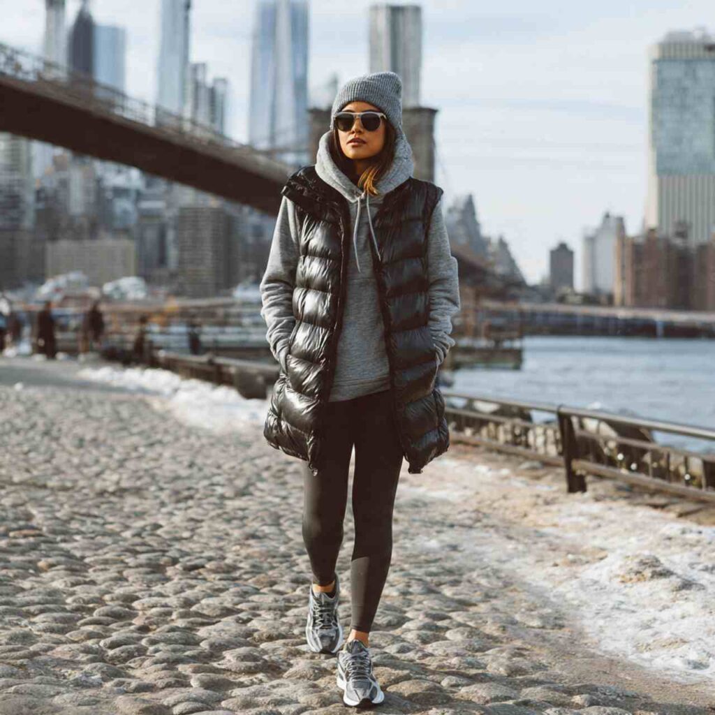 Why It Works for NYC: Athletic-inspired layers work for active lifestyles. Vests allow arm movement while keeping core warm. This styling is comfortable and increasingly fashionable.