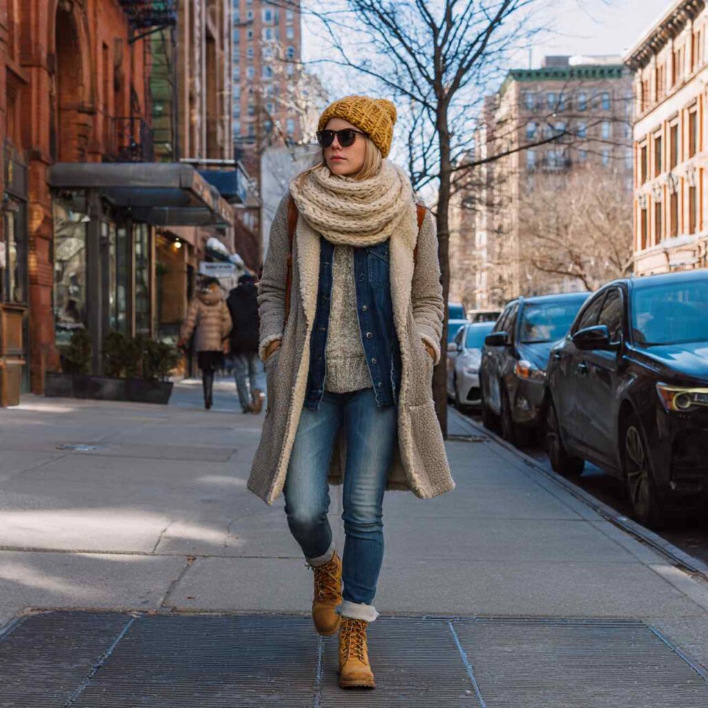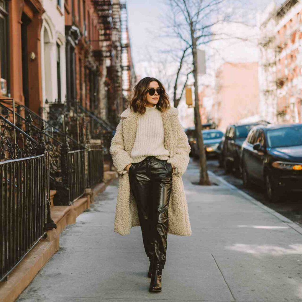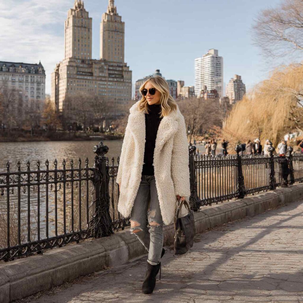 Why It Works for NYC: Teddy coats provide warmth through texture and thickness. They’re inherently cozy-looking which feels appropriate for brutal cold. The neutral colors work with everything.