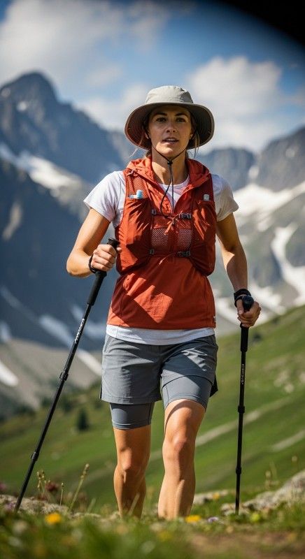 This terracotta lightweight vest adds a pop of color and extra pocket storage without restricting arm movement or trapping heat during summer hikes. The breathable mesh back panel promotes ventilation while multiple zippered pockets secure snacks, phone, and small essentials without adding pack weight. Layered over a white moisture-wicking tee and paired with gray hiking shorts, this outfit balances layering versatility with temperature regulation for changing mountain conditions. The moisture-wicking tee keeps you dry while the quick-dry shorts feature built-in liners preventing chafing during long miles. Terracotta is an earthy, warm tone that complements natural landscapes while the vest’s packability means you can easily stash it when temperatures rise. This smart layering system adapts to elevation changes and weather fluctuations while maintaining style and functionality throughout your adventure.