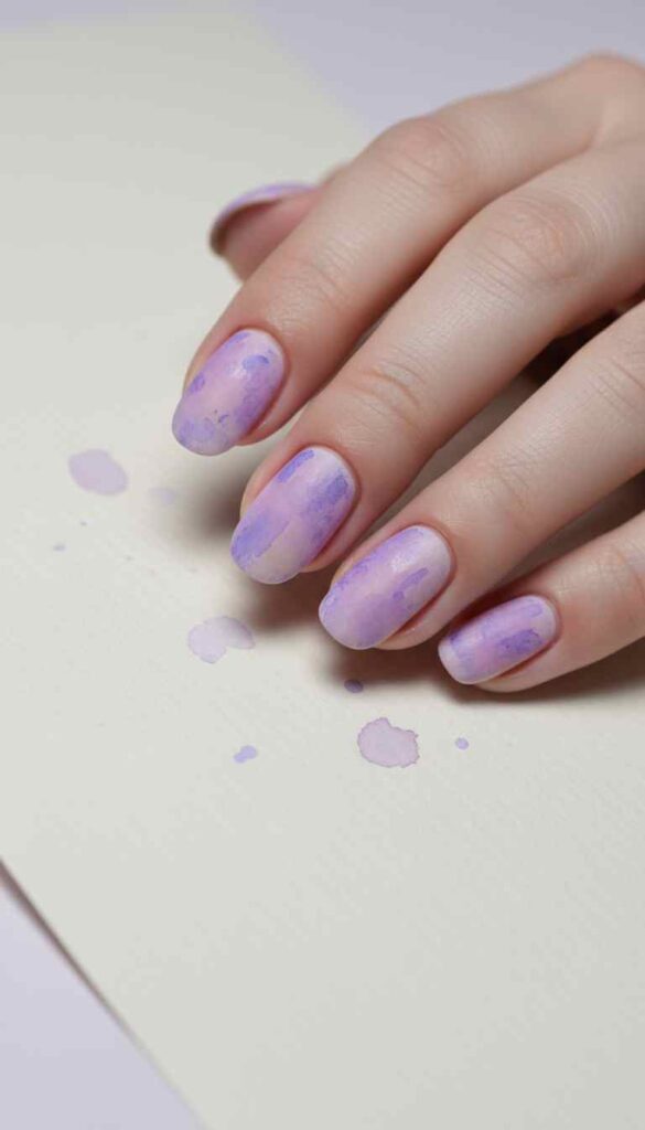 Soft lilac watercolor effect with visible brushstroke quality creates painterly pastel art.