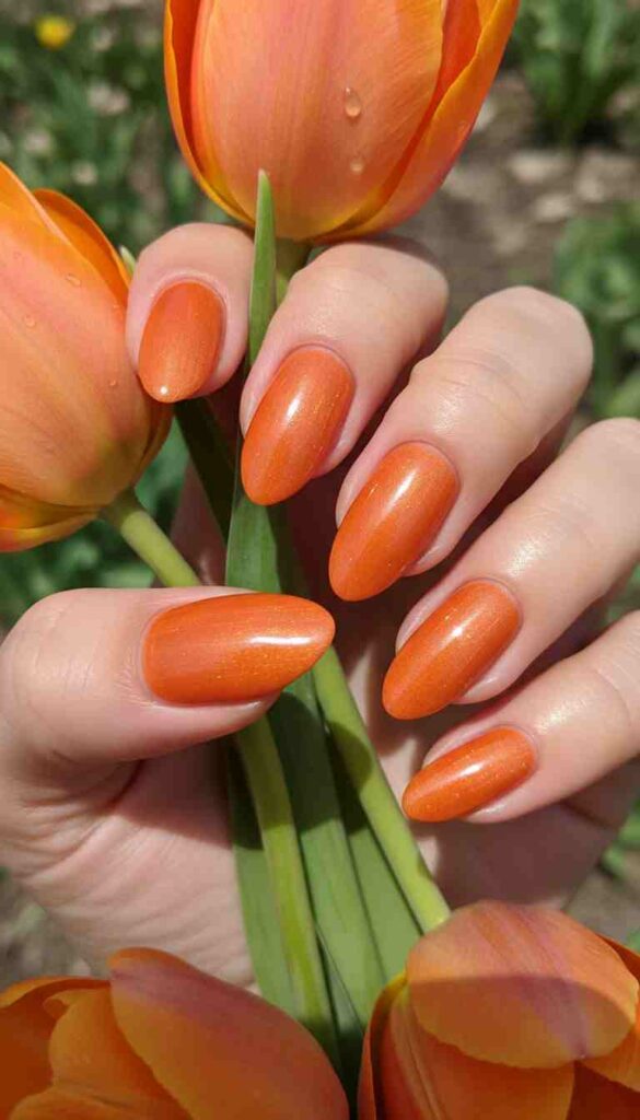 Vibrant tangerine orange creates energetic bold statement celebrating spring sunshine.