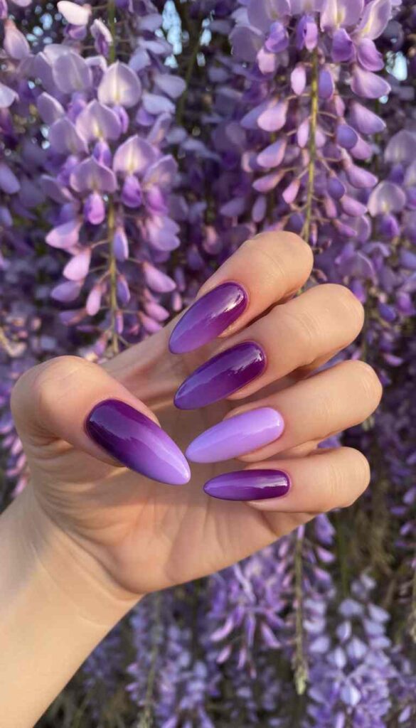 Saturated purple ombre from deep violet to bright lavender creates dramatic bold gradient.
