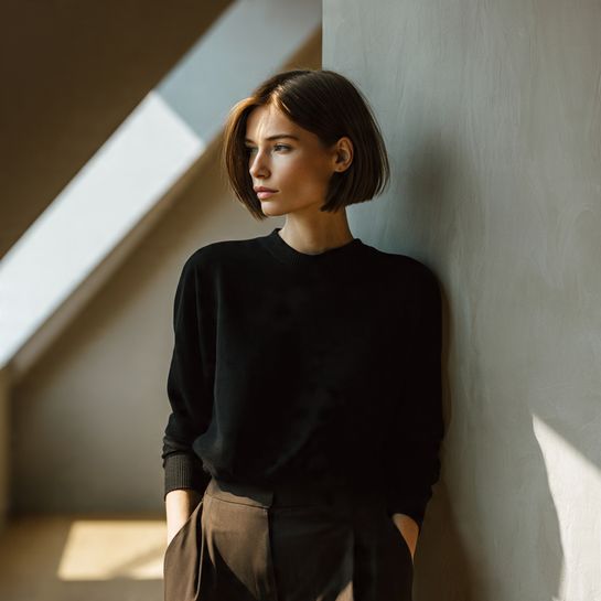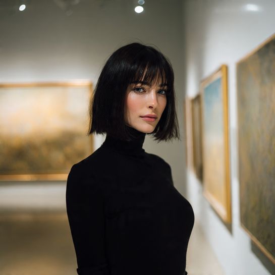 Modern geometric lines. Bob cut longer in front, shorter in back creates sophisticated angle.