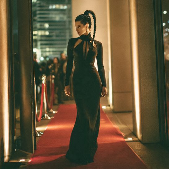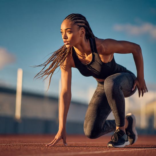 Long sleek athletic style. Two tight braids extended with added hair creates dramatic length.