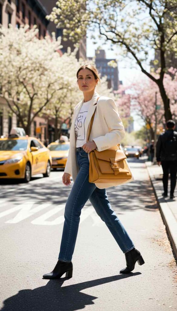 Fashion-forward urban edge perfectly suited for spring city exploration.