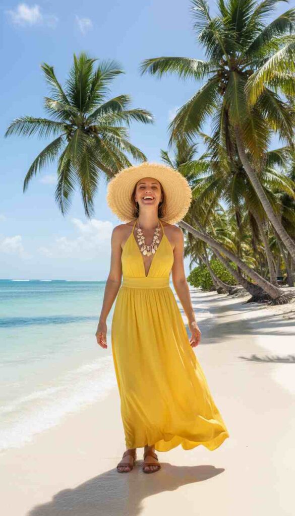 Easy breezy tropical dressing for Caribbean island adventure and beach beauty.