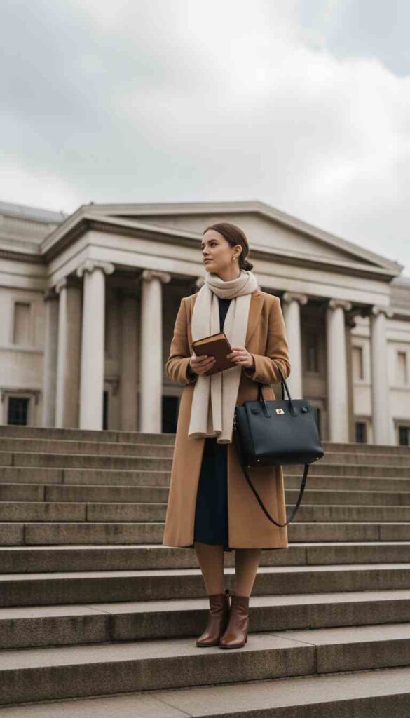 Smart casual British sophistication for cultural exploration of world-class museums.