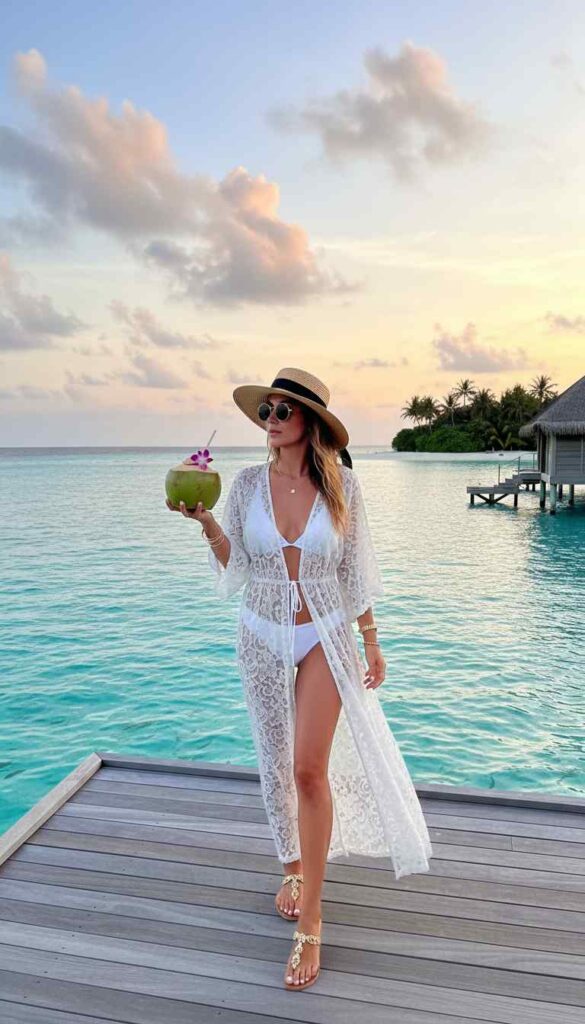 Ultimate tropical luxury dressing for overwater bungalow paradise experiences.