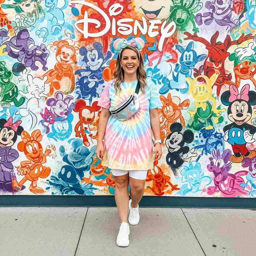 Embrace spring with a pastel rainbow color scheme. A tie-dye or color-blocked look in soft hues is perfect for springtime Disney photos.