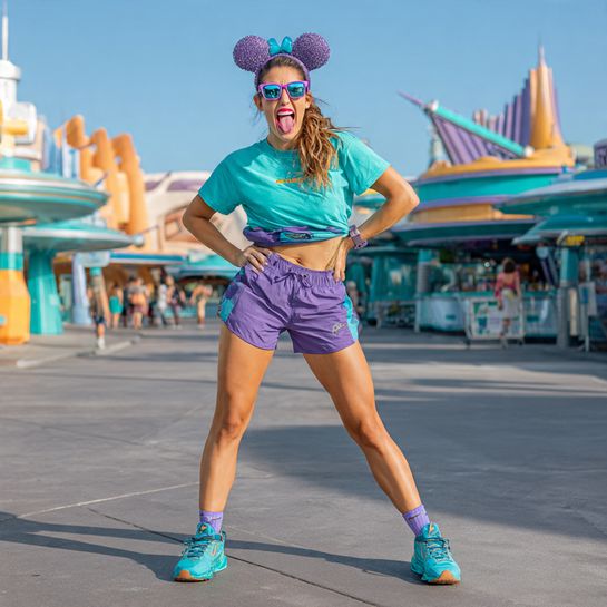 Matching athletic sets in fun colors keep you comfortable while looking intentionally styled. Add Mickey ears and you’re ready for rope drop to fireworks.