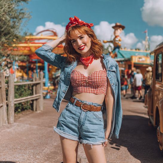 Western-inspired pieces in denim and gingham create a subtle Jessie tribute that’s perfect for Pixar Pier or Toy Story Land visits.