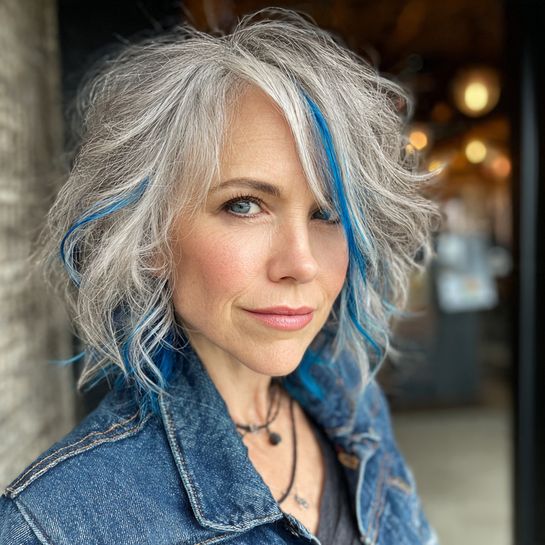 If you’ve been coloring for years and considering going natural, transitioning to gray is easier than ever. Stylists can blend gray growth with highlights during the transition, or you can embrace the grow-out with trendy silver-forward styles. Adding vibrant colors like blues, pinks, greens, and yellows to natural silver creates stunning dimension without traditional dye commitment.