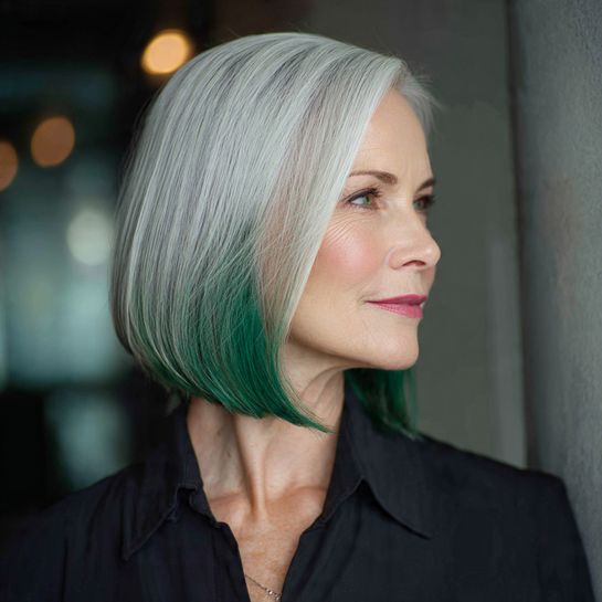A polished bob with emerald green ends adds sophisticated color interest.