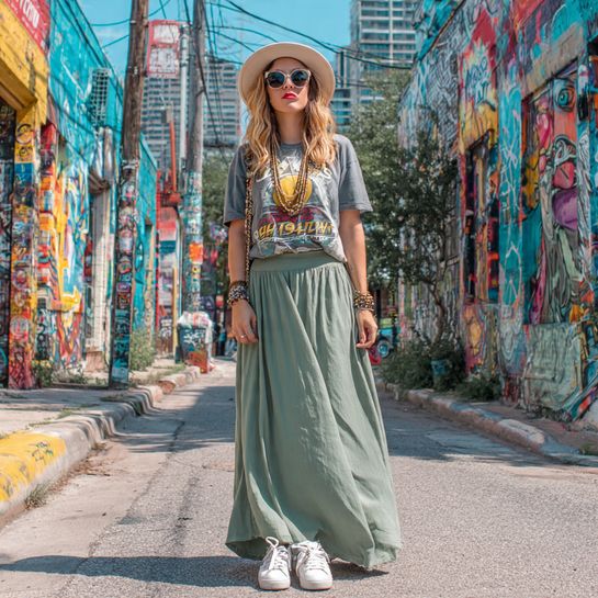 18. Maxi Skirt with Graphic Tee