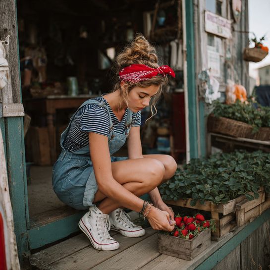 Overalls bring playful ease to vacation dressing. In linen with a striped shirt underneath, this creates approachable style perfect for farm visits or countryside explorations.