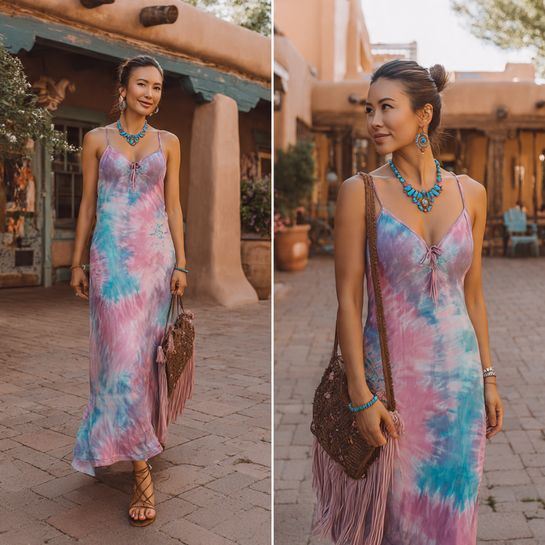 8. Tie-Dye Dress with Leather Sandals