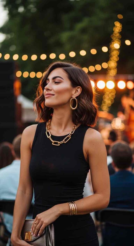 14: Black Tank Dress with Statement Accessories