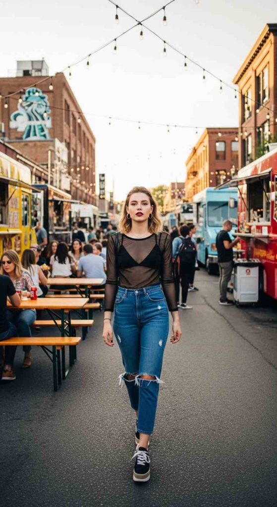 22: Mesh Top Over Bralette with Jeans