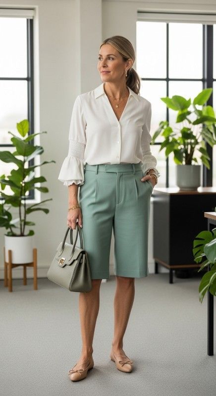 Why It’s Chic: Tailored shorts are professional when executed correctly, and paired with an elegant blouse and flats, this combination is sophisticated, breathable, and perfectly summer-appropriate for women over 40.