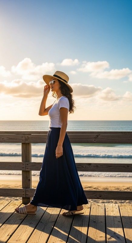 Why It Works: Maxi skirts are comfortable and elegant, while a fitted tee keeps the look grounded and casual. This high-low combination is perfect for everyday wear while still looking intentional.