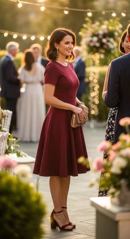 Why It Works: Fit-and-flare dresses celebrate the waist while skimming over hips and thighs. Short sleeves provide coverage without bulk. This silhouette is universally flattering and always appropriate.