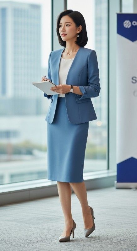 Why It Works: A coordinated shirt and skirt suit looks polished and put-together. Choose lightweight fabrics for summer comfort. This look is perfect for professional settings or formal daytime events.