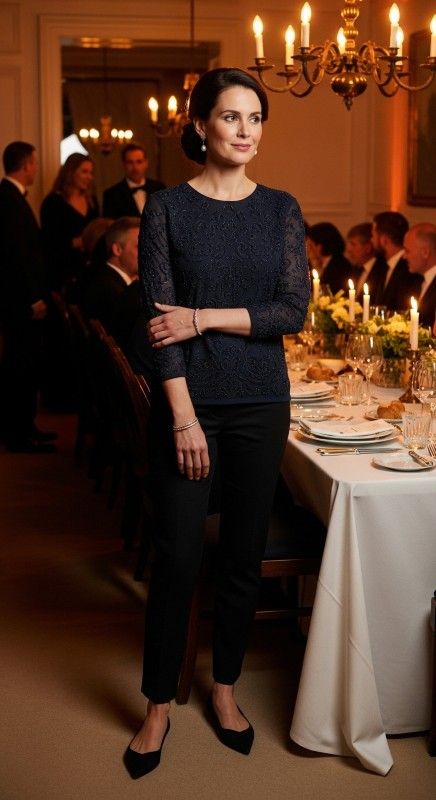 Why It Works: An embellished top adds special details and draws attention upward, while simple pants keep the look balanced. This combination is perfect for occasions when you want to look special without being overdone.