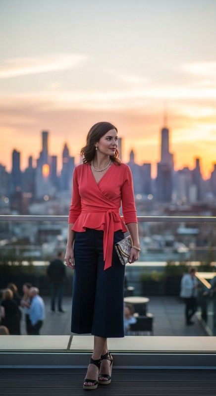 Why It Works: Wrap tops are adjustable and flattering, while cropped wide-leg pants are comfortable and modern. This combination balances feminine details with contemporary proportions.