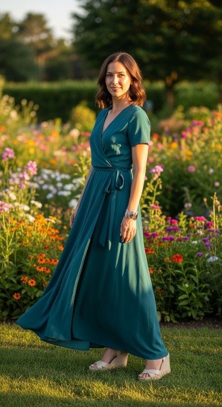 Why It Works: Wrap styles are universally flattering, defining the waist without constriction. Maxi length provides coverage and elegance, while short sleeves keep it summer-appropriate. This one-piece wonder is easy to wear and always looks put-together.