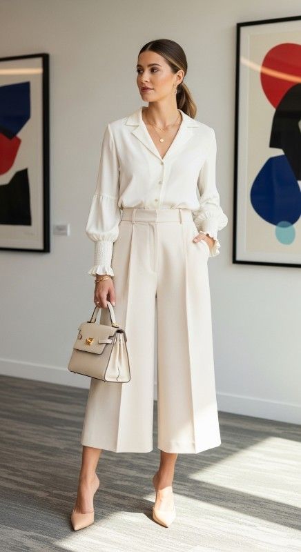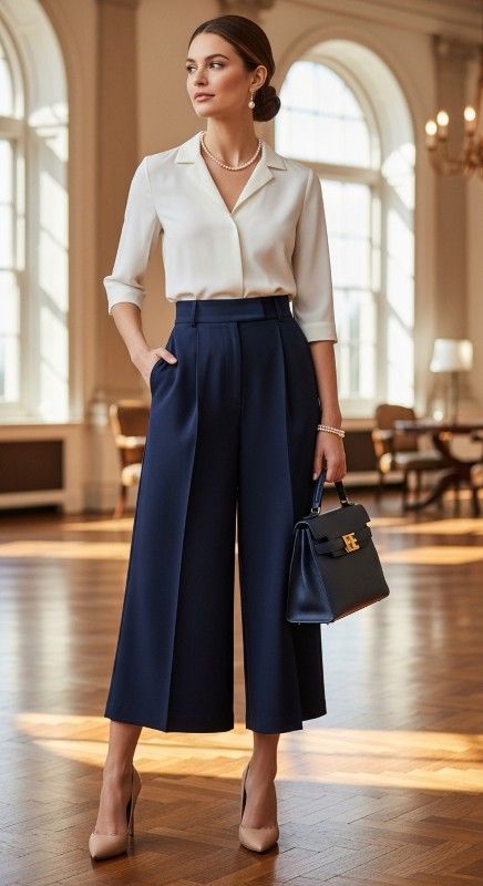 Why It Works: Culottes offer the comfort of wide-leg pants with the polish of a skirt. Paired with a structured blouse, this combination is professional, breathable, and incredibly chic. The cropped length shows just enough ankle to keep the look fresh and summer-appropriate.