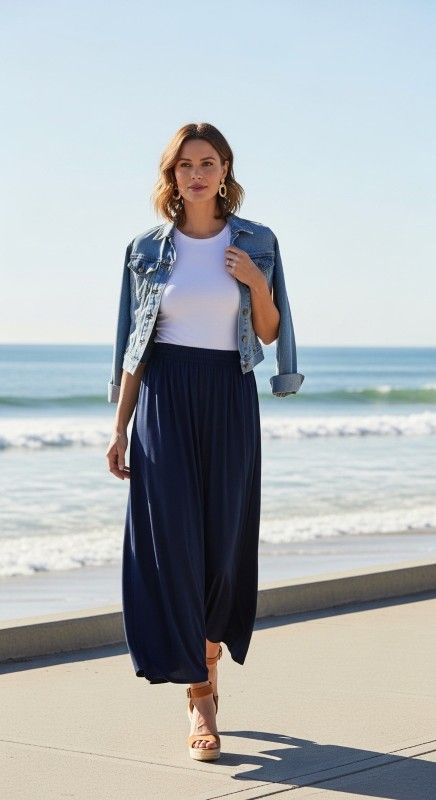 A floor-length wrap skirt in sage green offers adjustable fit and elegant movement that tall women can truly appreciate. The extended length means no awkward hemming while the wrap design creates a flattering waist definition. Style with a simple white tank tucked in and leather sandals for casual summer elegance. Add a denim jacket for cooler evenings and a basket bag for carrying essentials. Delicate bracelets and natural makeup enhance the relaxed yet put-together vibe. This versatile piece transitions from market visits to dinner dates seamlessly.