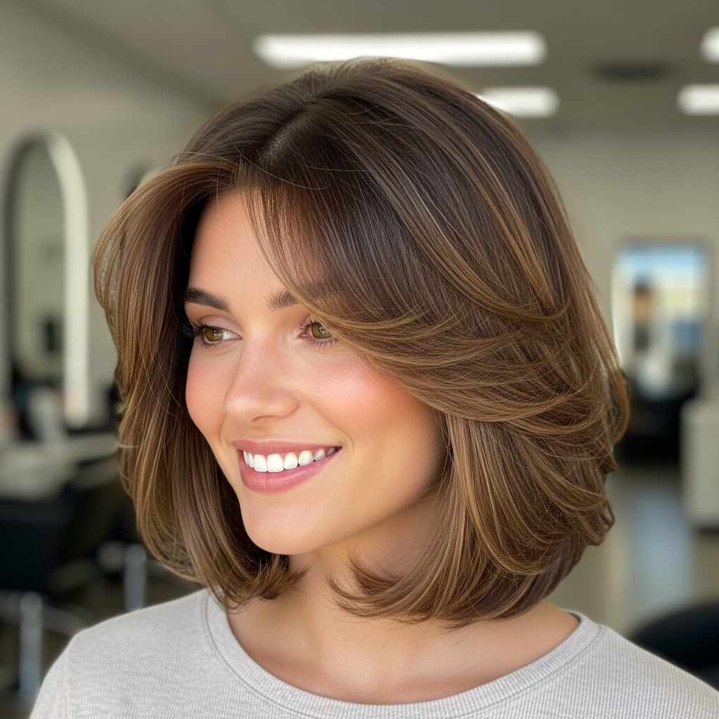 A chin-length bob with shorter layers underneath and longer pieces on top creates the illusion of butterfly wings when styled. The layers flip outward slightly, creating volume and movement. This playful cut has serious style impact.