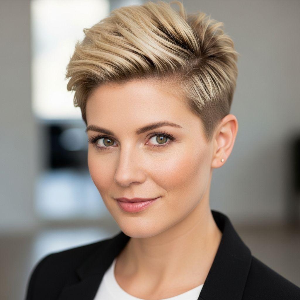 Why It’s Fresh: The 2026 pixie embraces texture over sleekness. The cut is designed to be styled multiple waysโslicked back, textured forward, or with volume on top. It’s the most versatile short cut available.