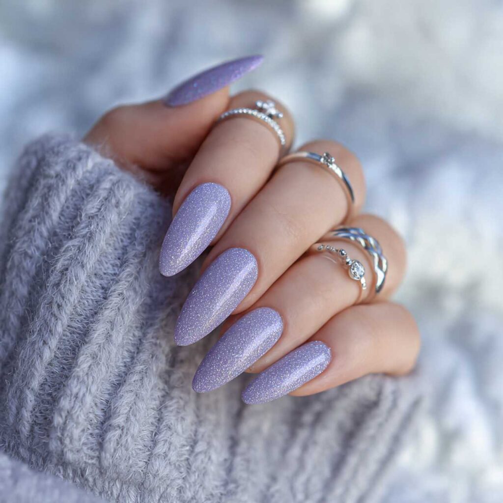 A pale lavender with cool grey undertones and slight shimmer creates frosty sophistication. This isn’t bright purple it’s muted, sophisticated, and utterly modern with an almost metallic sheen.
