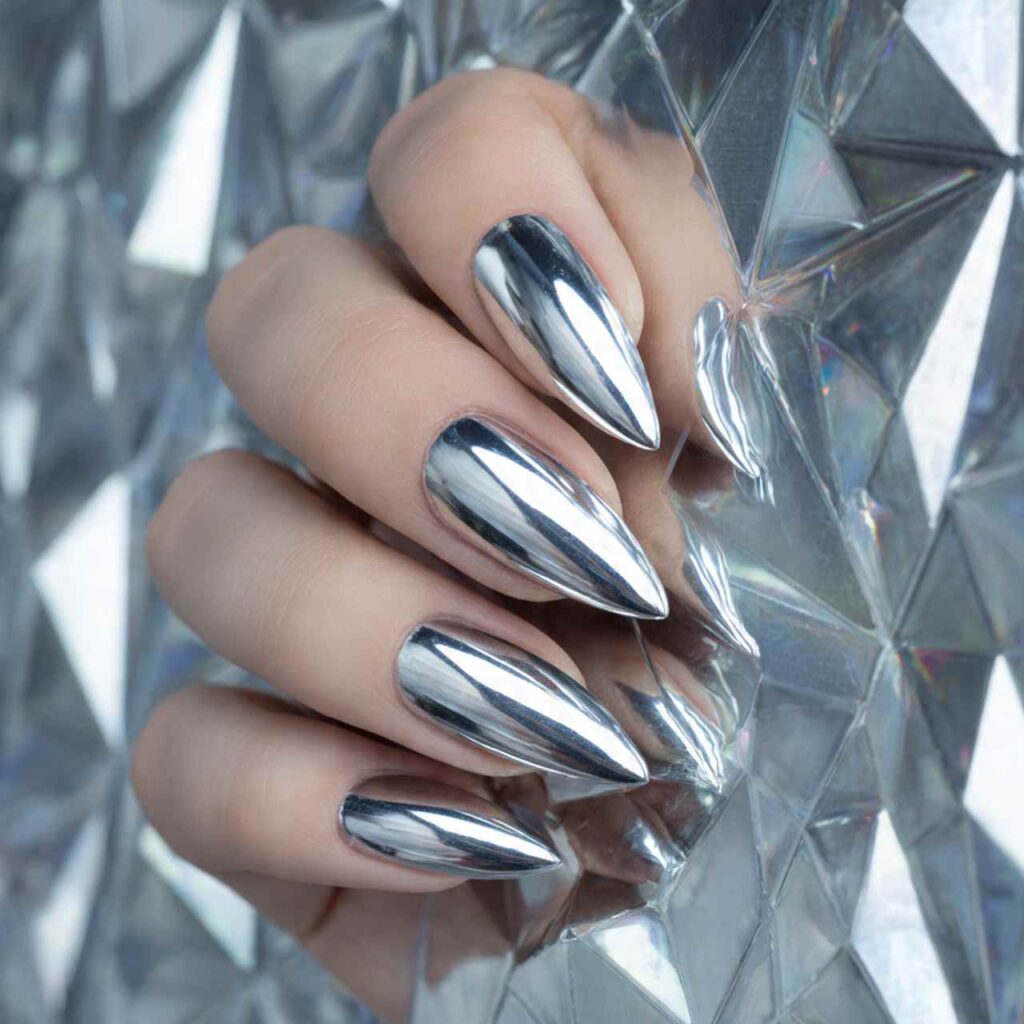Reflective silver chromeโmirror-like and futuristicโcreates high-impact metallics. This finish is bold and modern.