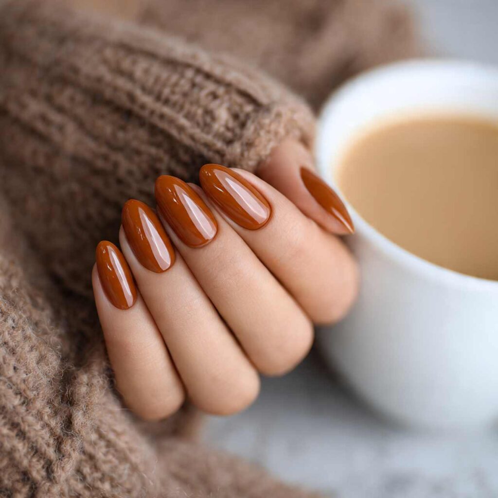 Warm caramel brown with golden undertones creates sweet sophistication. This shade is cozy and inviting like your favorite coffee drink.