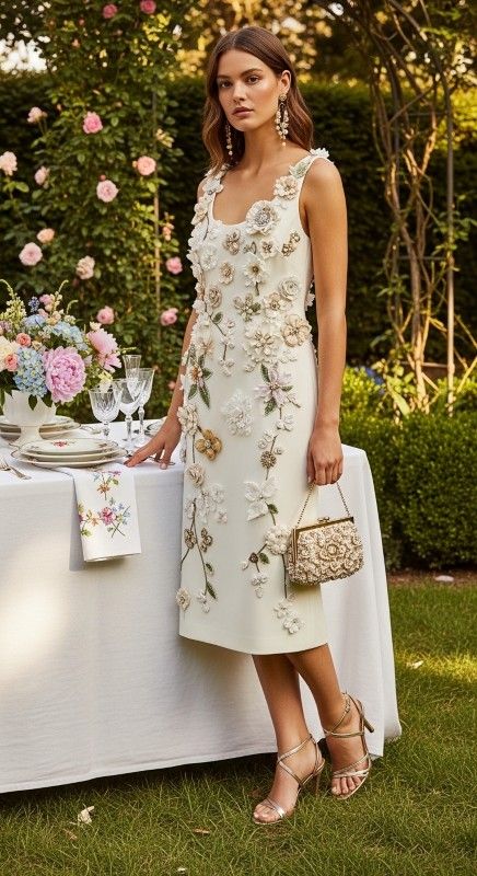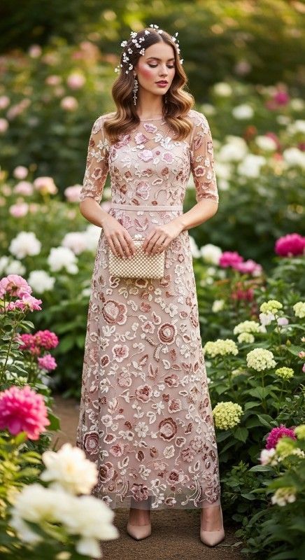 A blush dress with delicate floral embroidery on sheer mesh overlay creates ethereal femininity for special summer occasions. The intricate embroidery adds dimensional charm while the mesh layer provides romantic transparency. Pair with nude heels and a pearl-embellished clutch for garden wedding elegance. Add delicate hair pins and soft makeup for fairy-tale finishing touches. This dress celebrates artistry with wearable dreaminess. Perfect for engagements or milestone celebrations.