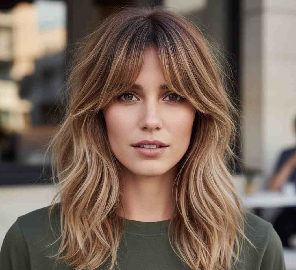 Why it’s trending: This is the most requested combo right nowโshaggy texture meets flattering curtain bangs for a look that’s trendy and timeless.