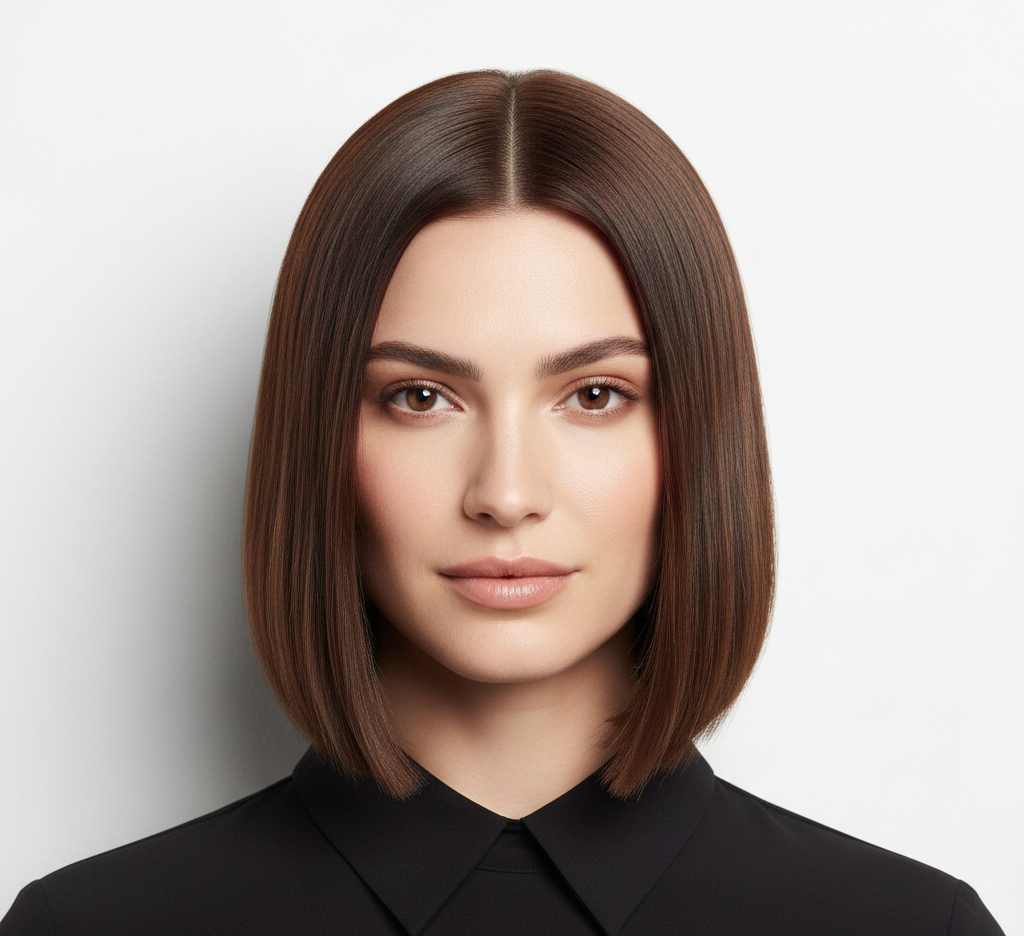 A sleek, blunt lob (long bob) that hits right at the collarbone with minimal layering for a clean, sophisticated line. The modern classic that never goes out of style.