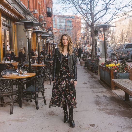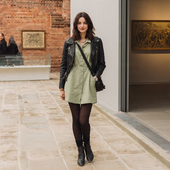 One piece, multiple layers. Spring dress with tights and leather or jean jacket bridges seasons while simplifying outfit decisions.