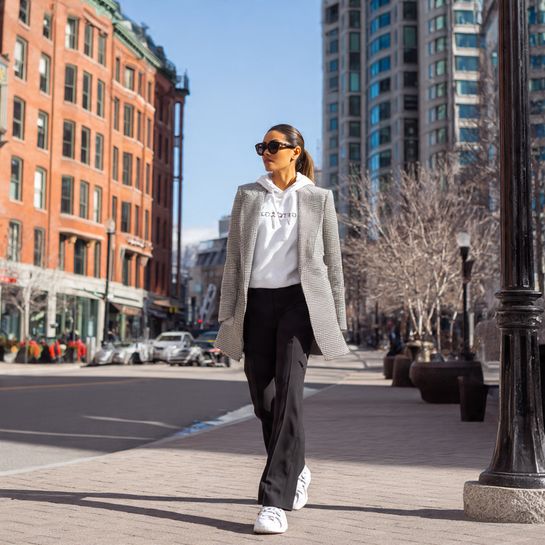 6. Blazer Over Hoodie with Trousers