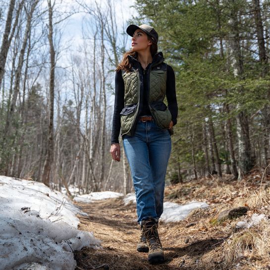 Sleeveless outerwear adds core warmth. Puffer vest or quilted vest over long-sleeve tee with jeans provides adaptable temperature control.